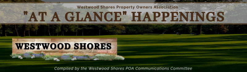 Welcome to the latest edition of Westwood Shores 'At A Glance' Happenings. Whether you're looking to enjoy a game, attend a Civic event, join a class, check out a golf tournament, or just get the latest notices we've got you covered. For a more comprehensive, detailed event list, click the  Calendar button.